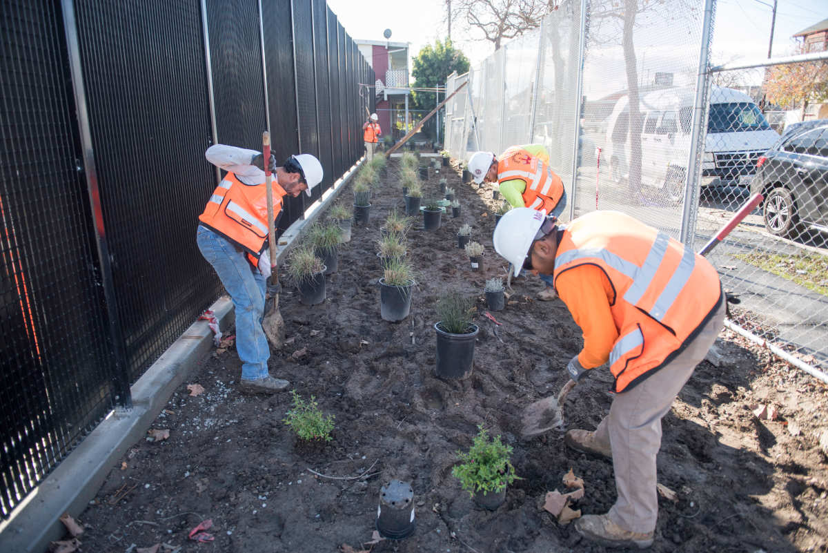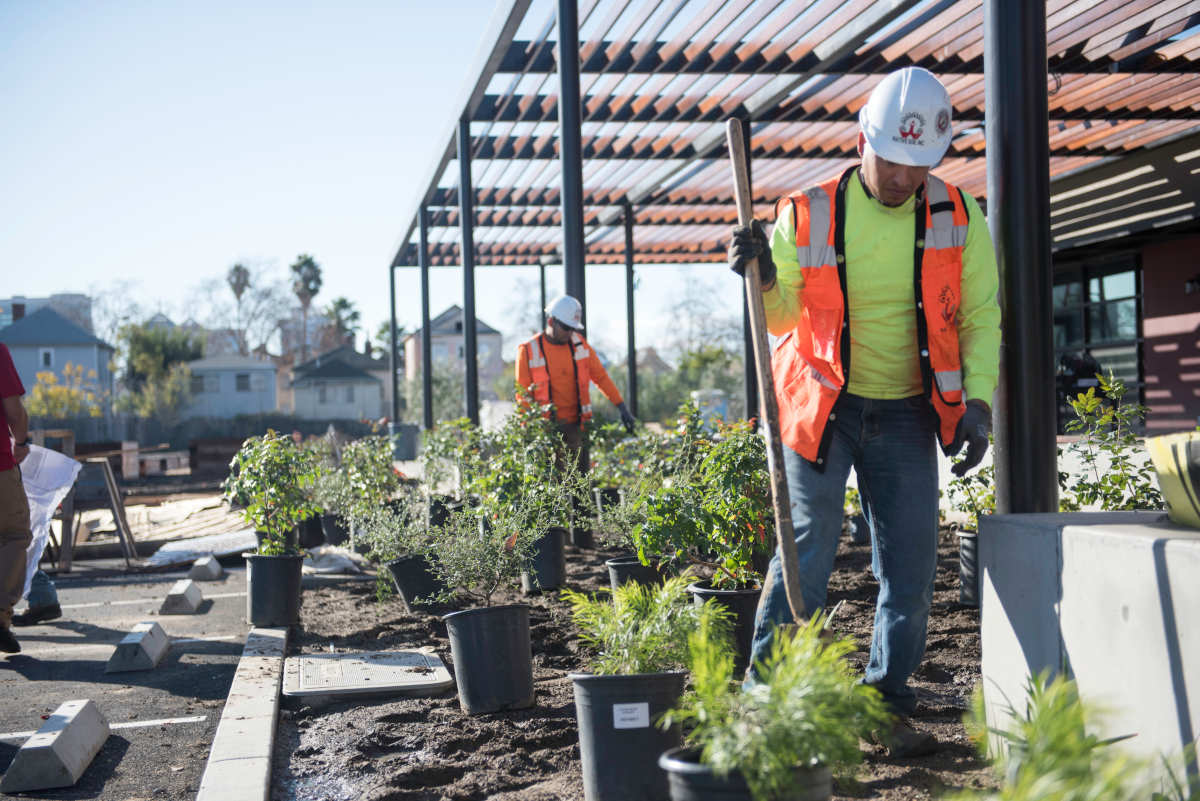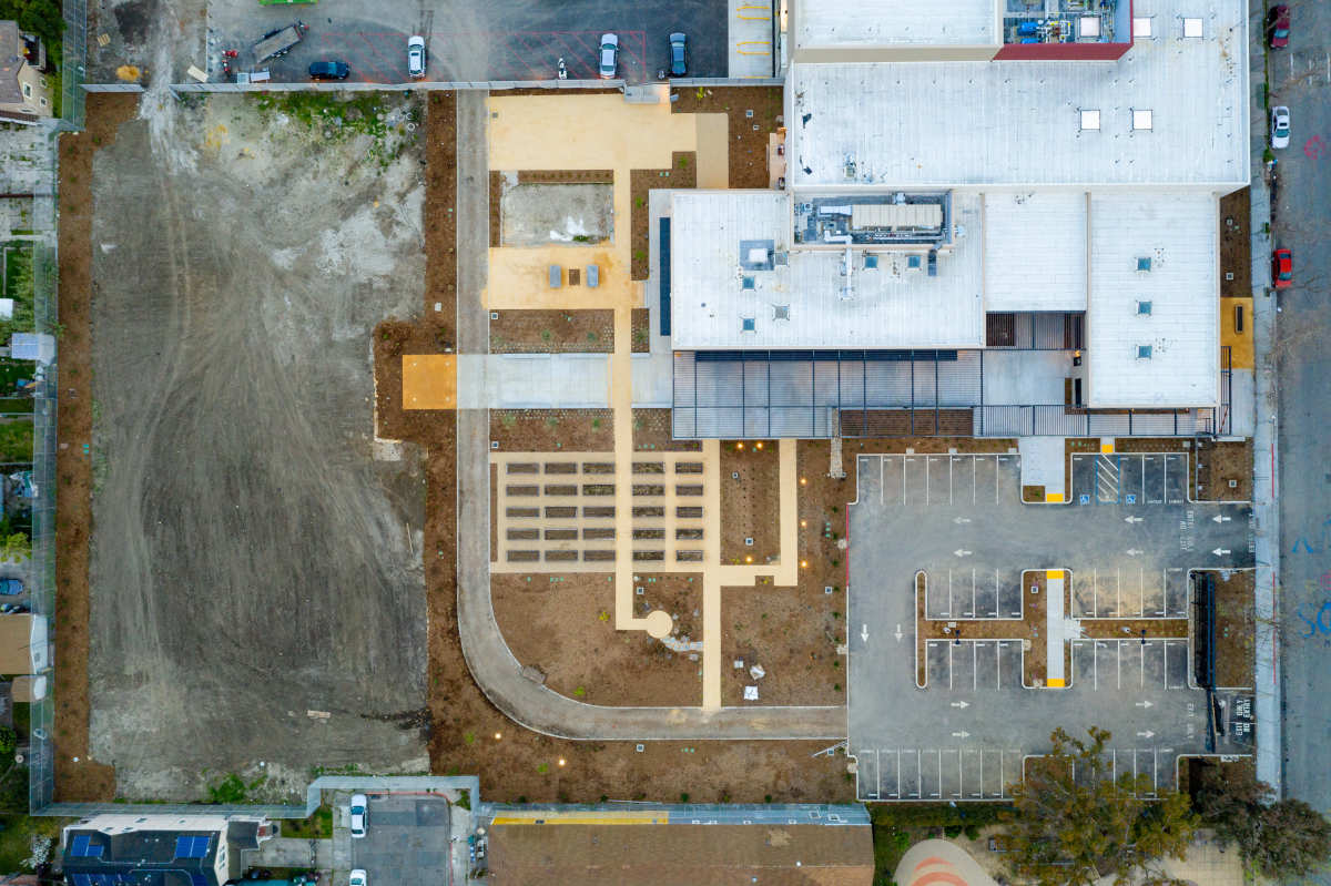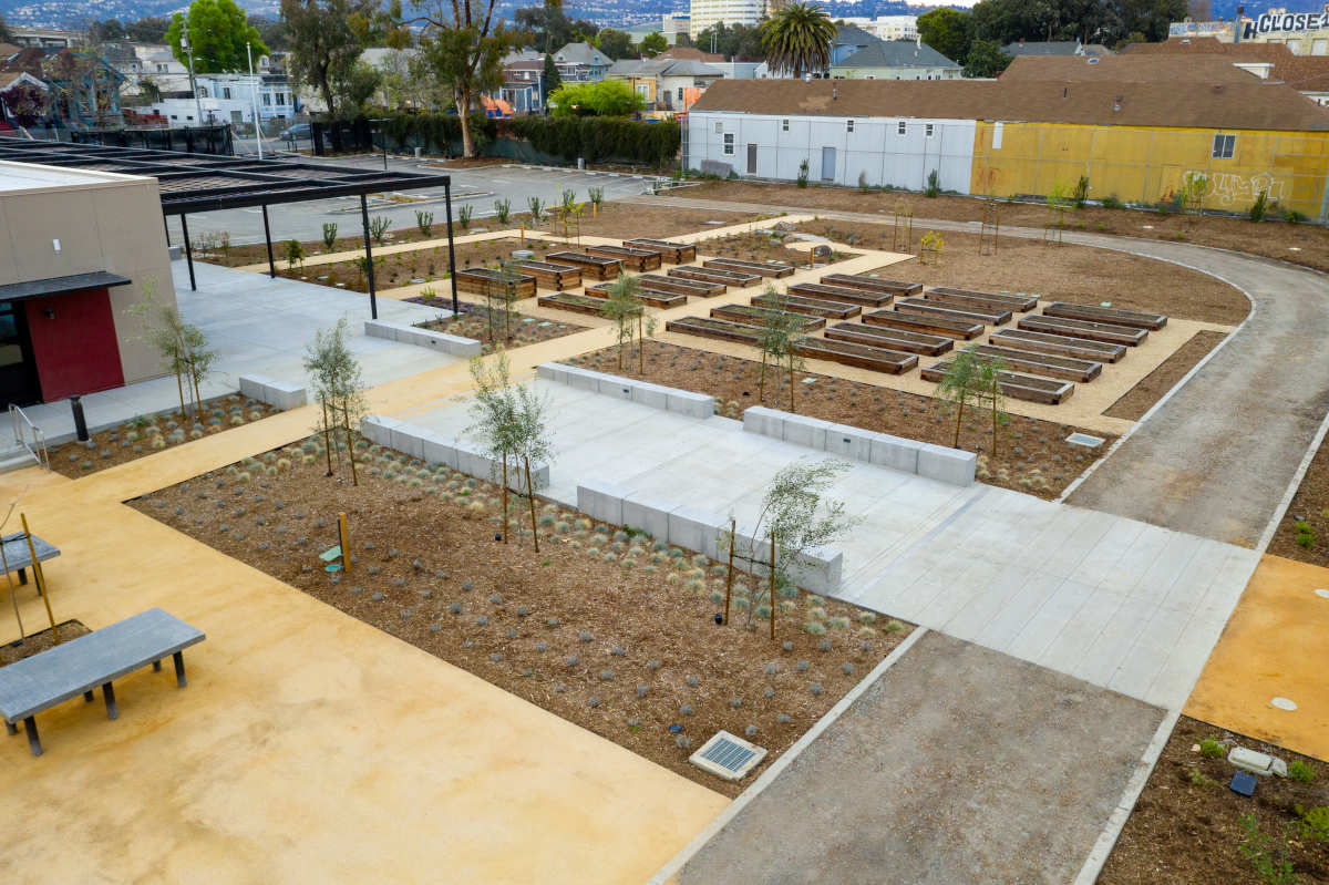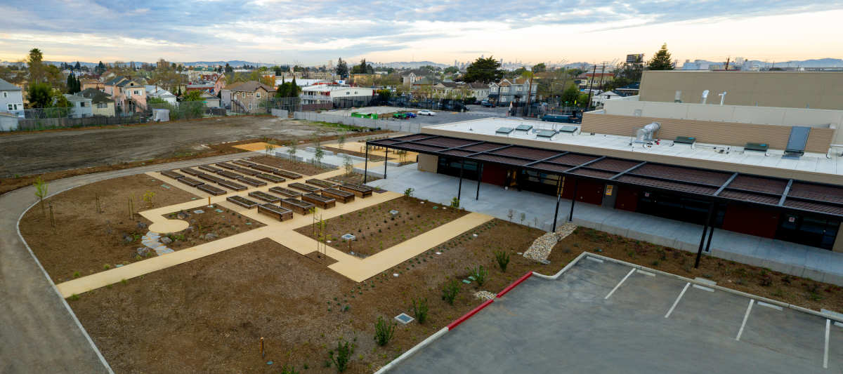 The Central Kitchen is a project that will produce 35,000 healthy meals for the students of Oakland Unified School District. The project is a 43,000 sf centralized kitchen which has ADA accessible vegetable planters, bioswales to treat water on site, and the entire project itself is an edible fruit garden, which has many fruit trees including olives, almonds, limes, pomegranates, and herbs. Central Kitchen is an educational garden that will teach kids how to propagate seeds in the green house; transplant to the vegetable gardens; harvest their own food; finally moving the produce to an interactive small kitchen where kids will make their own meals. As OUSD alumni Angelina and Emmanuel are proud to have been part of this project that employed many Oakland residents and will continue to feed healthy meals to our immediate community.